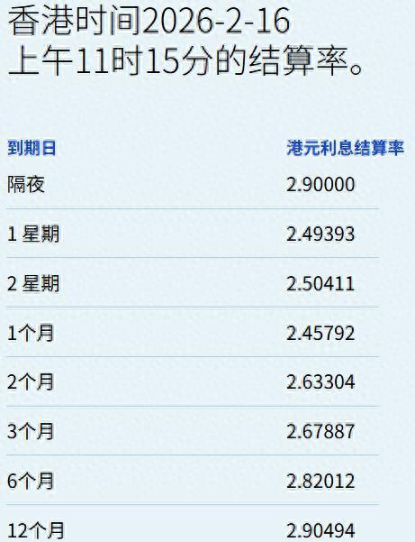 智通财经APP获悉,2月16日,港元拆息普遍向下,而与楼按相关的一个月拆息终止两连升报2.45792%,跌5.672基点;反映银行资金成本的三个月拆息报2.67887%,跌0.762基点。