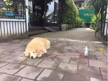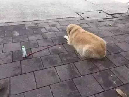 别看这种方式好像是开玩笑也一样,不过这只大金毛居然还真的就被一个瓶子给拴住了,乖乖地趴在那里一动都不动,路人们看到这一幕也都笑喷了,主人这一瓶水比简直比孙悟空花的圈还要好使呢,不过金毛还真是一种听话的狗狗。